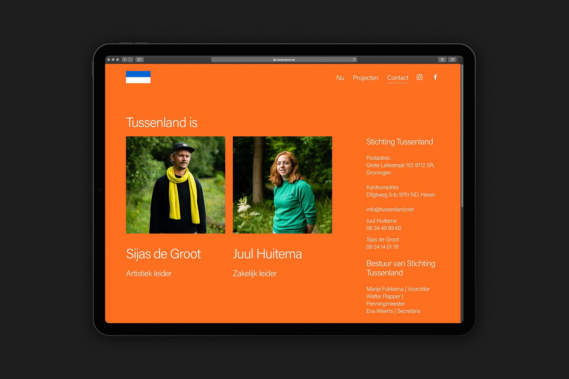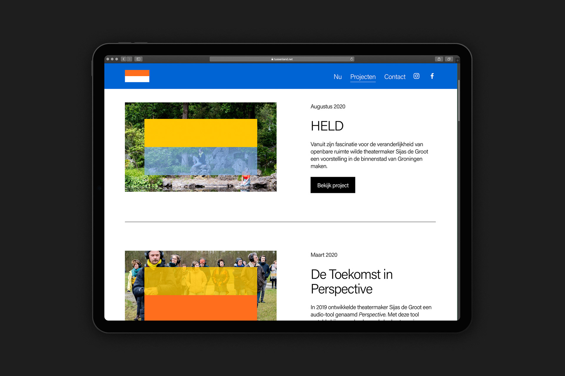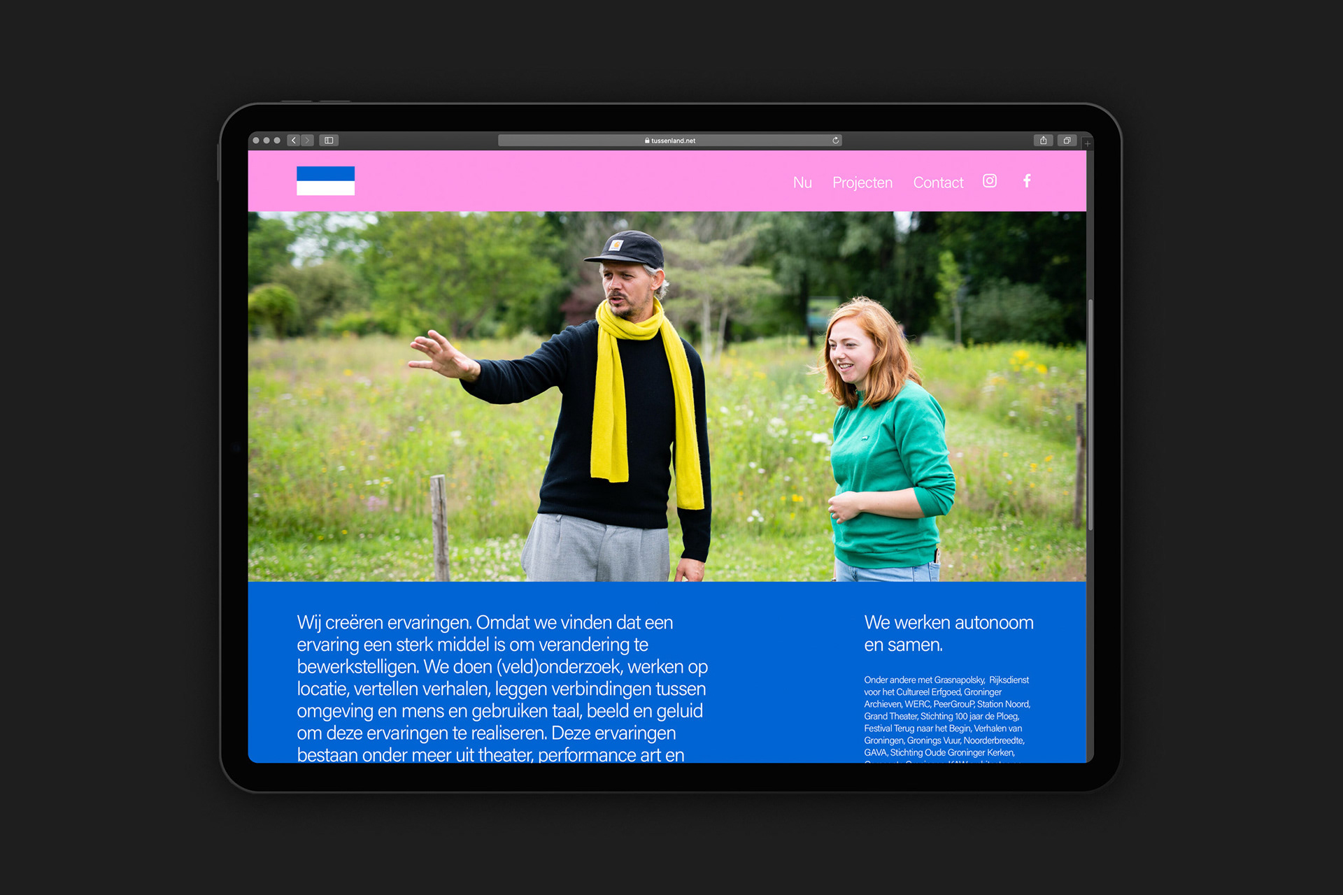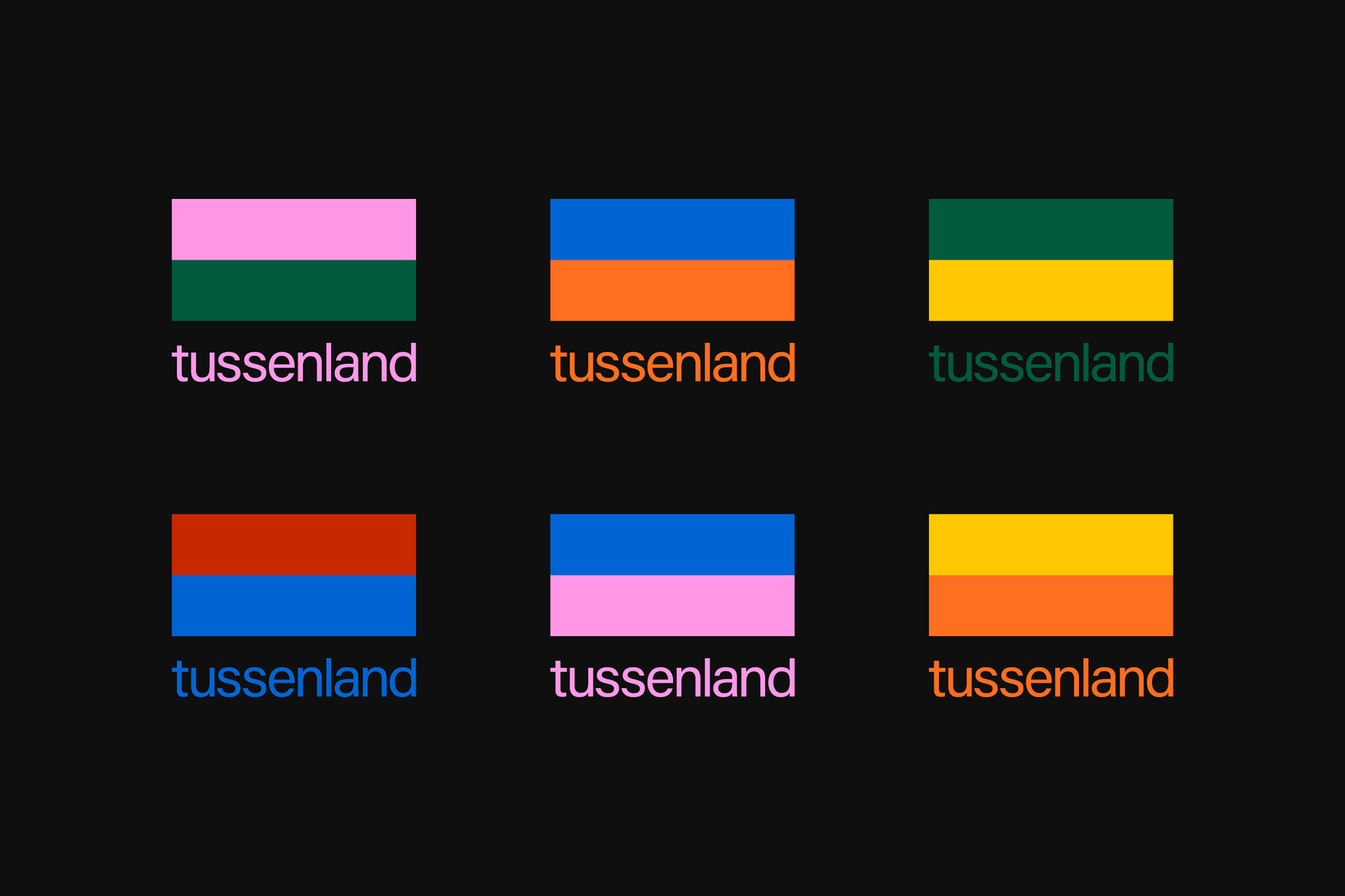Visual identity design for Tussenland. Tussenland creates experiences in public space, aiming to let people relate to places in a new and conscious manner. And inspire new ways of living (together).